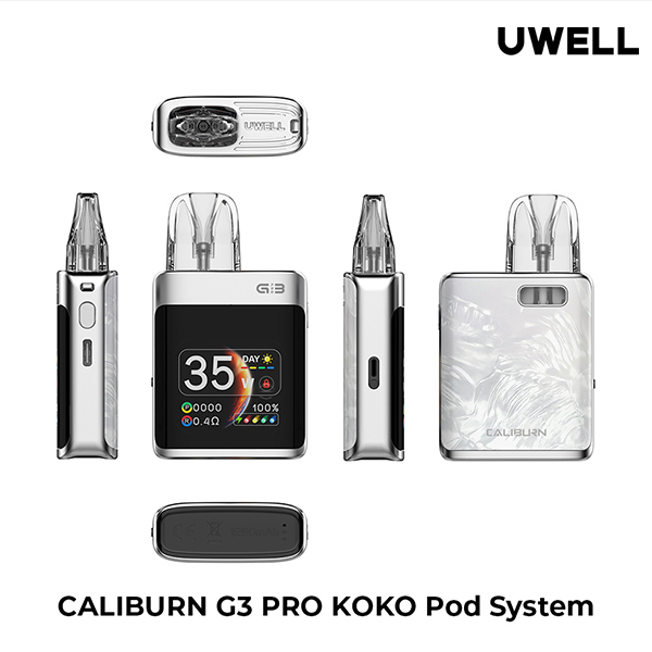 - Uwell Caliburn G3 Pro Koko Pod 1250mAh Pil Gövdesi: 1250mAh kapasiteli, yeniden şarj edilebilir pil gövdesi. Taşınabilir ve kullanımı kolay bir tasarıma sahiptir.